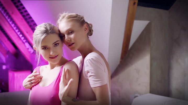 可爱美女一边看着色情戏还互相色情服务对方